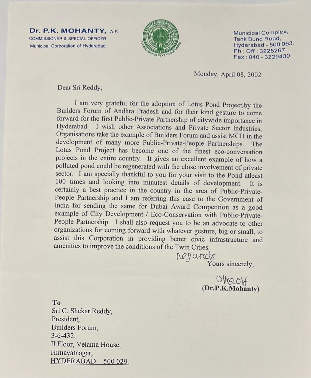 Mr. Reddy has championed sustainability by leading initiatives such as Rainwater harvesting and the recycling and reuse of treated water from STPs in United Andhra Pradesh. His efforts were pivotal in the development of the award-winning, eco-friendly conservation project, Lotus Pond, a hallmark of environmental preservation. As an early advocate of green building practices, he has been associated with the inception of the CII - Indian Green Building Council (IGBC), playing a vital role in promoting a sustainable built environment across India.