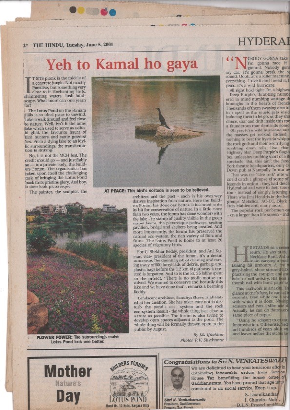 The Lotus Pond project, spearheaded by the Builders Forum in collaboration with the Municipal Corporation of Hyderabad (MCH), stands as a landmark eco-conservation initiative. Located on Road No. 12 Extension, Banjara Hills, this 11-acre perennial water body, once plagued by neglect and misuse, has been transformed into a thriving ecosystem and community space.